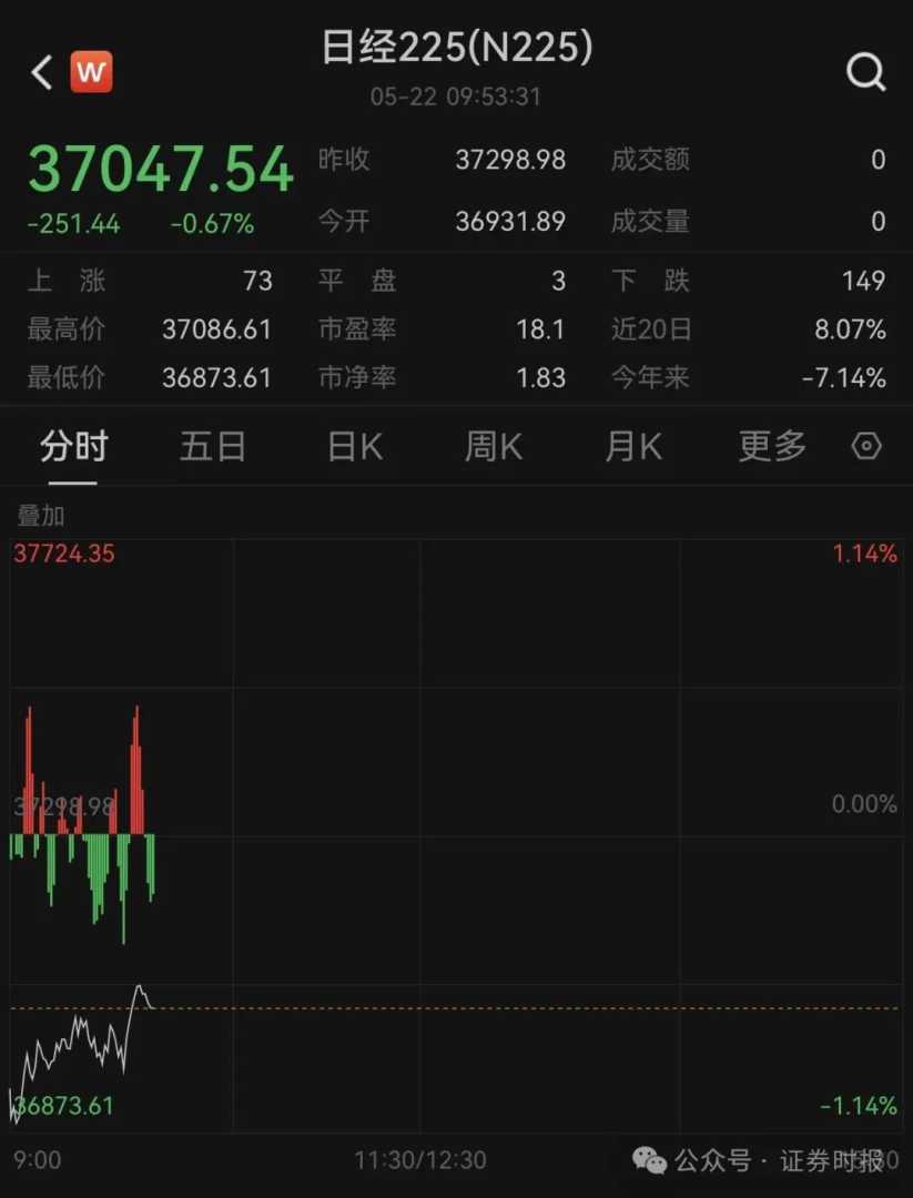 比特币再次创下历史新高。5月22日,亚太市场普遍下跌,日经225指数一度跌超1%,截至发稿时,日经225指数跌0.67%,韩国综合指数跌0.55%,富时新加坡海峡指数跌0.27%,澳洲标普200指数跌0.30%。A股市场开盘涨跌互现,沪指低开0.17%,深成指低开0.19%,创业板指小幅高开。香港恒生指数开盘跌0.33%,恒生科技指数跌0.11%。
