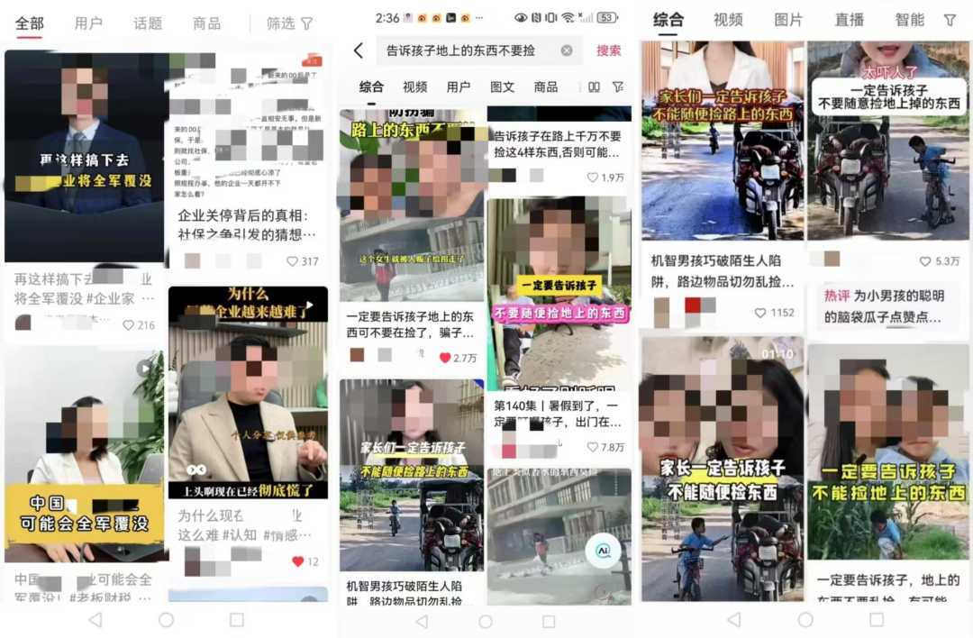 部分用户发布未经证实的社会事件或摆拍内容,引发关注。如某短视频平台出现大量“告诉孩子地上东西不要捡”的视频,文案雷同,摆拍痕迹明显。