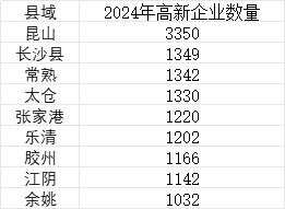截至2024年,全国共有9个县域的高新技术企业数量突破1000家,昆山稳居第一。这些企业主要集中在东部沿海发达地区和中西部强省会下辖县域,形成产业集群,推动经济转型升级。