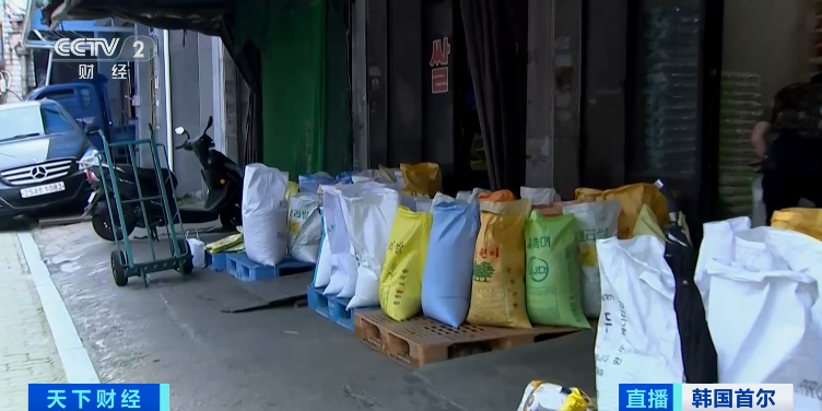 在首尔粮食批发街区,多家米店前堆满大米,价格比超市便宜,吸引众多市民购买。据韩国农林畜产食品流通公社数据,21日韩国20公斤大米零售均价为56147韩元(约合人民币294元),约为日本大米价格的三分之一。