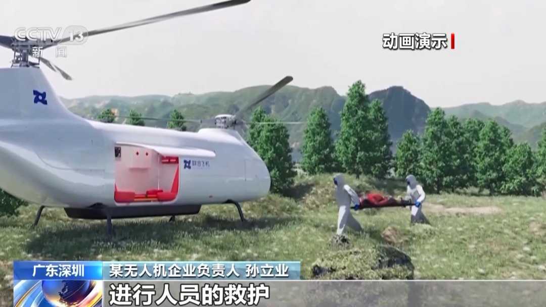 某无人机企业负责人孙立业:我们的无人机起飞重量可达1.4吨,巡航时间8小时,可用于空中救护、森林灭火及应急物资运投。