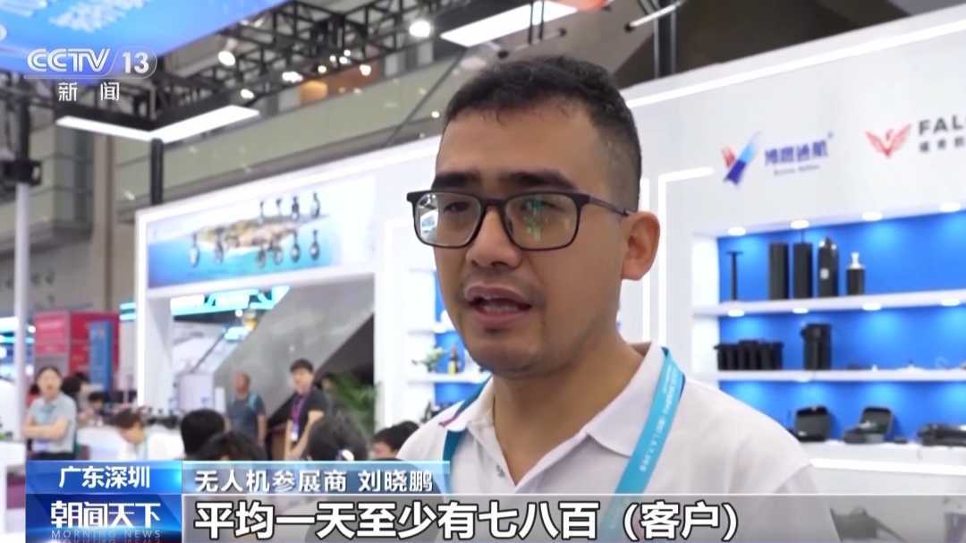 无人机参展商刘晓鹏:平均每天至少有七八百客户,他们对我们的飞机、飞控、附件等都非常感兴趣。
