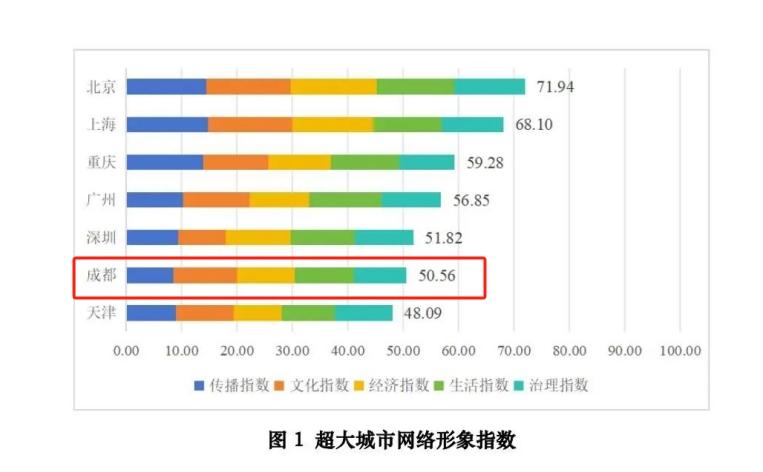 在城市传播网络形象维度的排行榜上,上海、北京、重庆、广州、深圳、天津、成都、杭州、哈尔滨、厦门位居全国前十,成都的传播影响力得到了广泛认可。