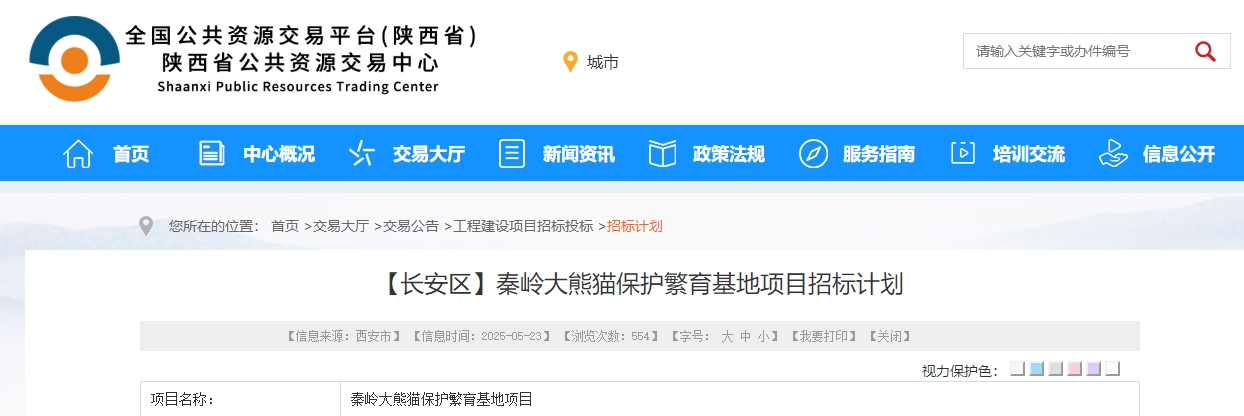 【声音】秦岭大熊猫保护繁育基地项目招标计划发布,项目估算总投资约6.86亿元,计划于2025年6月启动。
