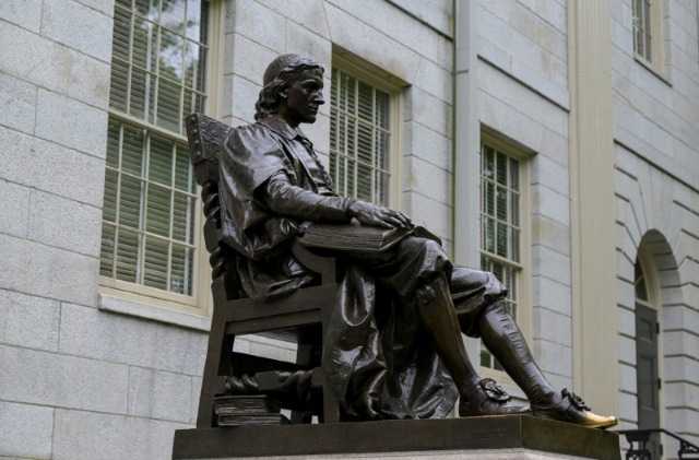 5月23日,拍摄的哈佛大学创始人约翰·哈佛雕塑。 新华社发