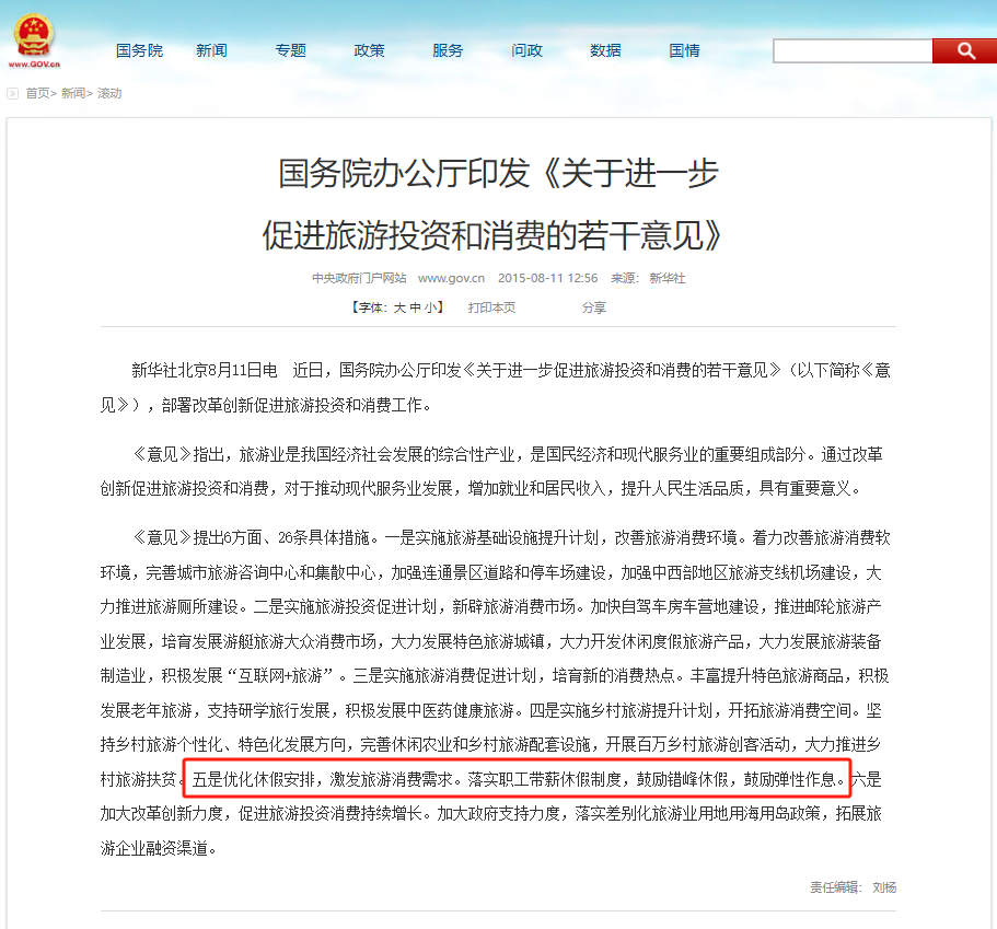 四川绵阳并非首个提出试行2.5天休假的城市。早在2015年,国务院办公厅印发的《关于进一步促进旅游投资和消费的若干意见》中,就已有优化休假安排的内容,鼓励错峰休假和弹性作息。