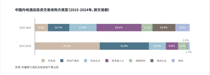 在买家方面,市场逐渐从开发商和房地产基金主导向多元化发展,高净值人士及家族办公室、私有企业和国资企业积极入市交易,持续提升了酒店投资交易的活跃度。