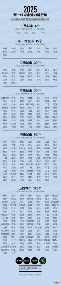 此外,榜单还公布了2025年城市分级完整名单,包含337个地级及以上城市,全面展示了中国城市的竞争格局。