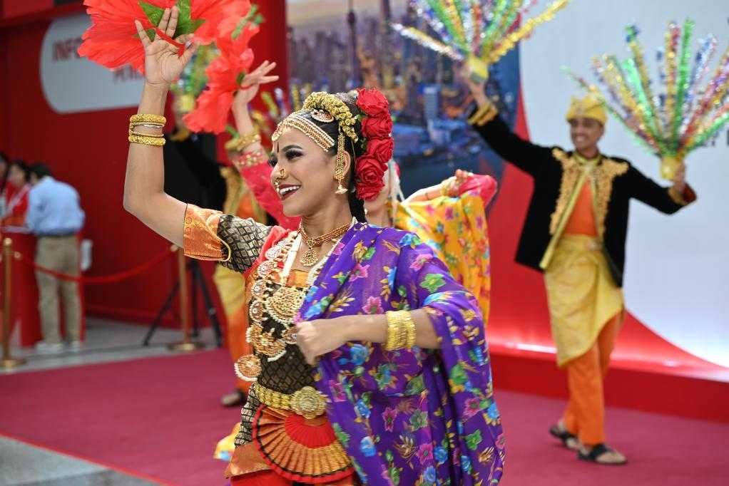 5月27日,马来西亚参展人员在展会现场为观众呈现传统舞蹈表演。新华社记者陈爱平摄