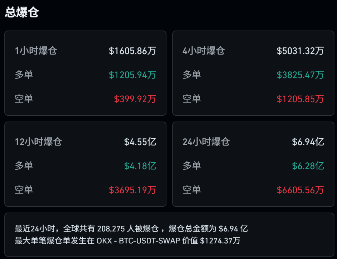 在比特币创历史新高时,大量资金涌入市场做多。据报道,贝莱德比特币ETF在5月份吸引了创纪录的资金流入。数据显示,该基金当月吸引了超过63.5亿美元的净流入,使其管理的总资产超过710亿美元,显示出投资者对比特币的浓厚兴趣。然而,随着市场急速下跌,大量账户出现爆仓。据Coinglass数据,近24小时内超过20万人爆仓。