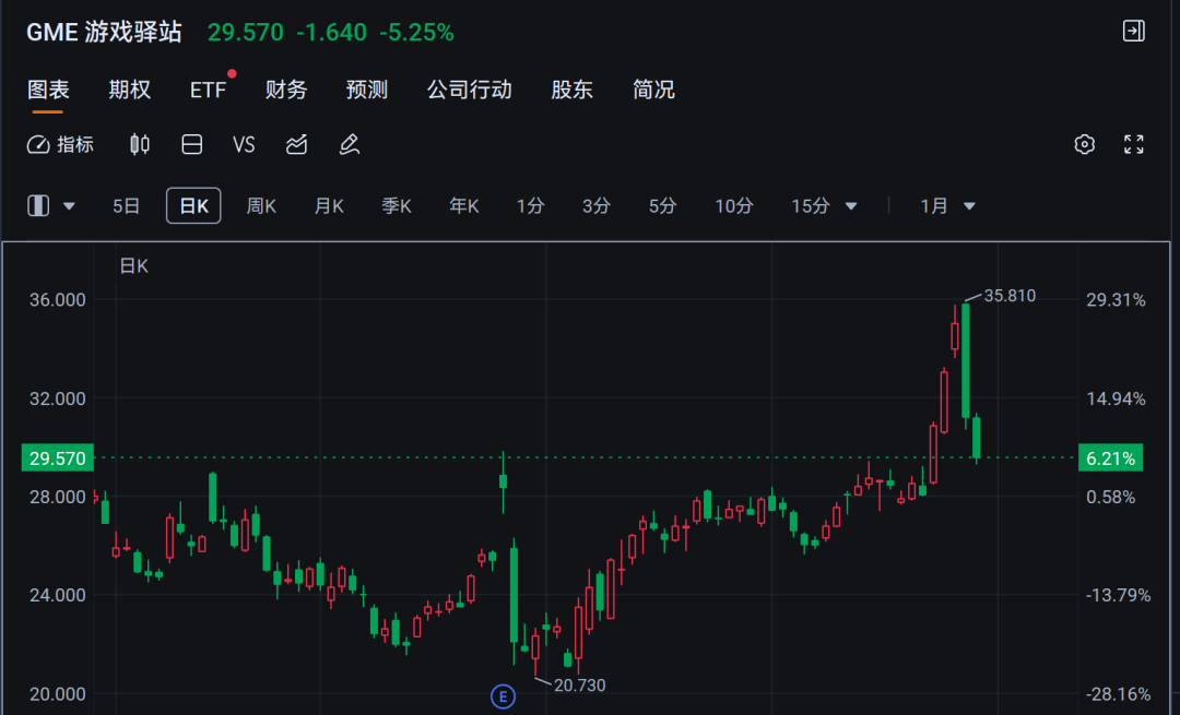 游戏驿站(GME.N)公司近期宣布购买了4710枚比特币,这是该公司自年初宣布将比特币作为储备资产以来的首次加密货币交易。按当前价格计算,这笔交易成交额接近5亿美元。随着比特币的历史新高后急速回调,该公司股价也经历了大幅波动,5月28日和29日两日累计回调超过15%。