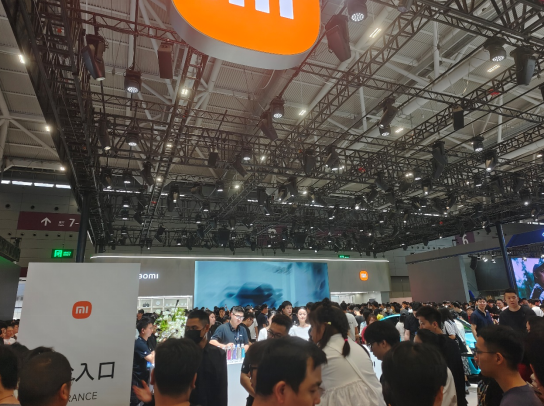 车展现场,小米汽车展位同样人潮涌动,小米SU7、小米SU7 Ultra以及SUV小米YU7悉数亮相,这也是小米YU7的首次车展亮相。观众排队进入小米汽车展位,体验未来出行的魅力。