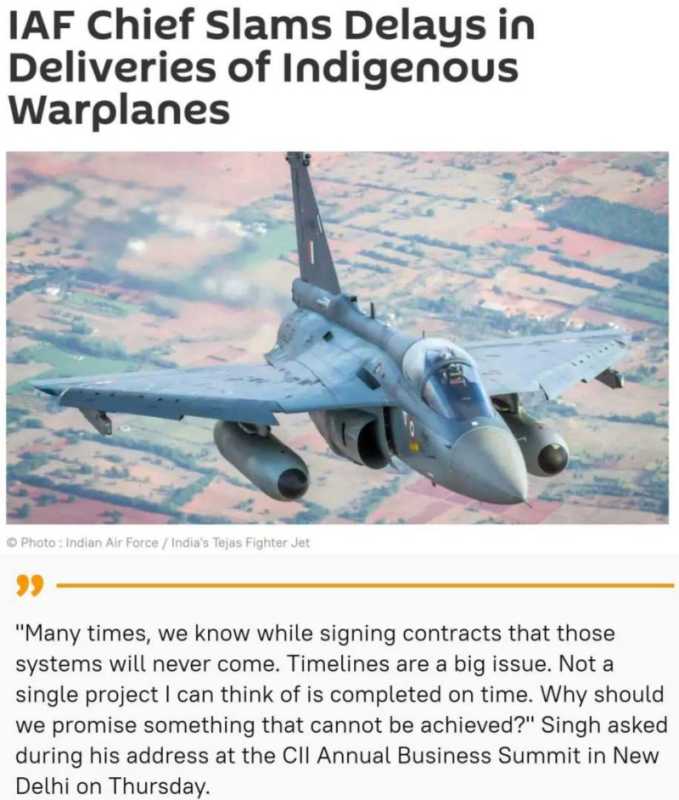印度空军高官表达不满:“国产战机”交付延迟