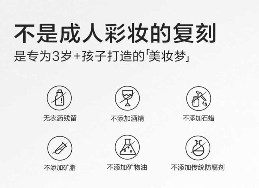 “红色小象”儿童彩妆的研发人员指出,儿童彩妆同样受《儿童化妆品监督管理规定》约束,应在销售包装上展示“小金盾”,从而与成人化妆品、玩具等进行明确区分,避免有害成分。通常,好的儿童彩妆会用玉米淀粉代替传统彩妆里常见的滑石粉,并尽量减少可能引发刺激儿童皮肤的成分,比如香精、成膜剂、酒精、激素等。产品类型上,水溶性彩妆、笔状产品,以及可撕拉指甲油更适合孩子在使用后清洁干净,避免因过度清洁而伤害肌肤。