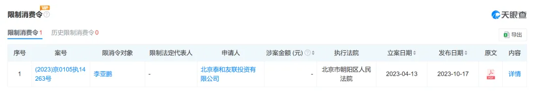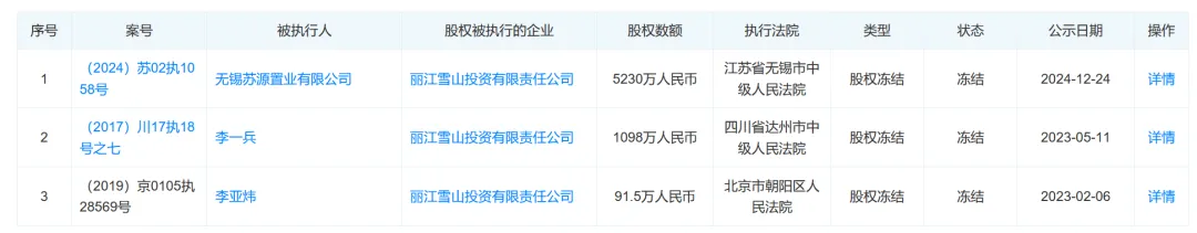 此外,李亚鹏持股的丽江雪山投资有限责任公司近期也新增3条被执行人信息,被执行总金额约244万元,并被限制高消费。李亚鹏名下关联8家企业,其中多家为存续状态,但他也因投资失败多次陷入争议。