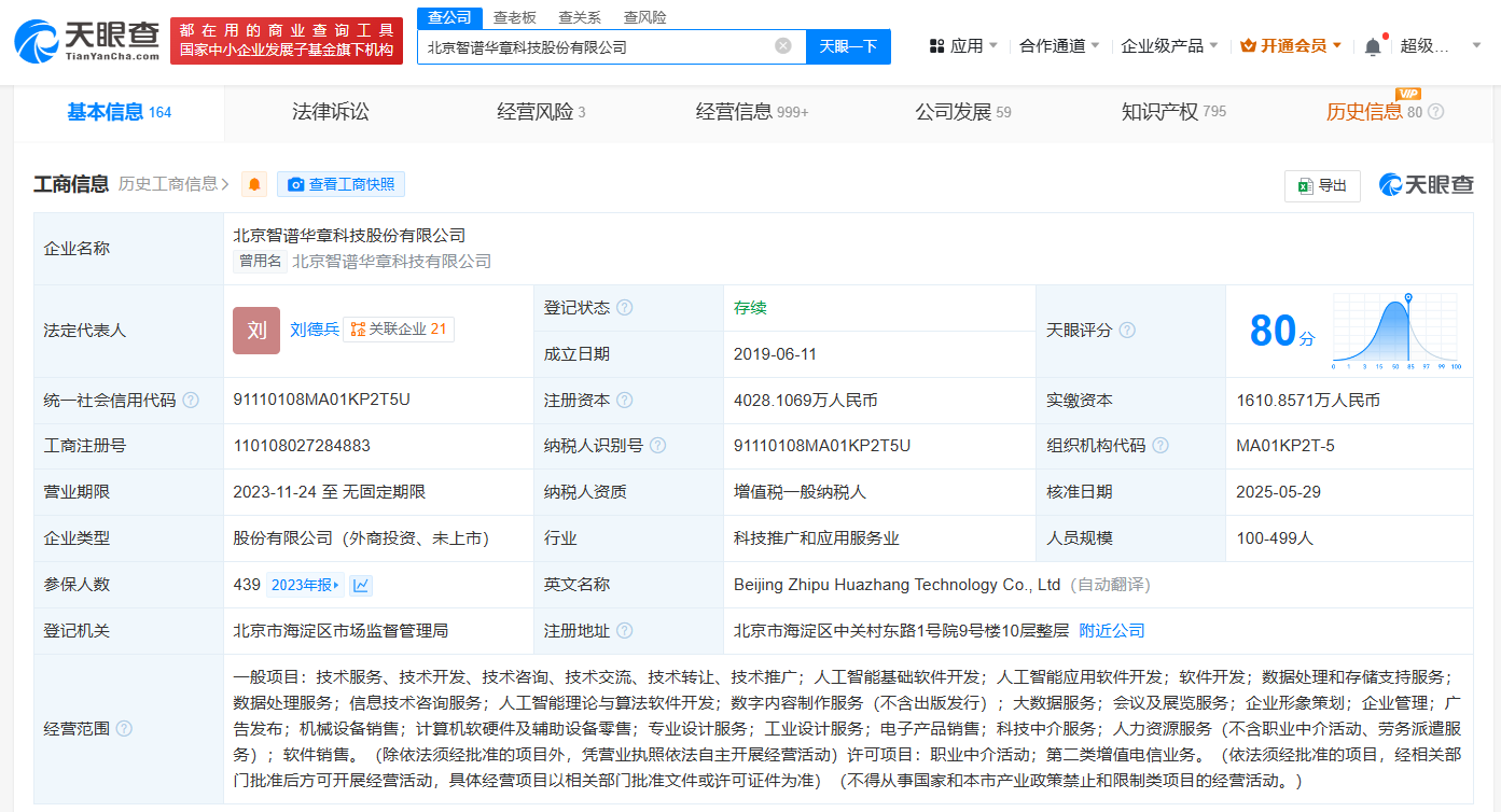 北京智谱华章科技注册资本增至4028万,强化AI领域布局