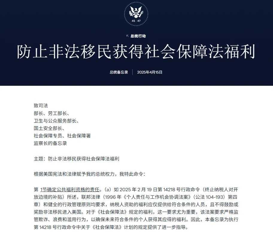 SSA表示将评估政策和流程,但外界担忧暂停可能延长。特朗普政府近期频繁散布无证移民滥用福利的言论,加剧了对合法移民的打压。