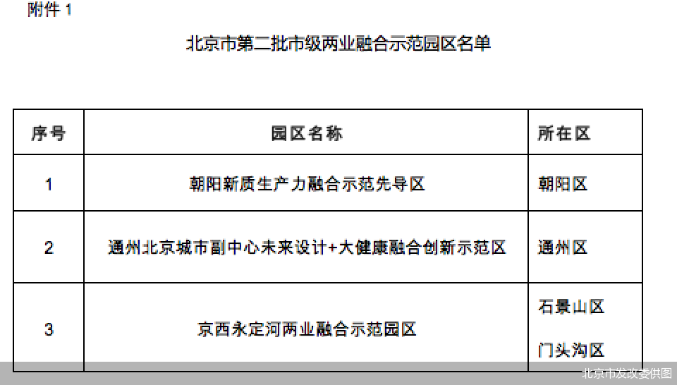 6月4日,北京商报记者从北京市发展改革委获悉,近日,根据《北京市先进制造业和现代服务业融合示范园区和试点企业认定及支持办法(试行)》,北京市认定了第二批市级两业融合示范园区与试点企业。包括朝阳新质生产力融合示范先导区、通州区城市副中心未来设计+大健康融合创新示范区、京西永定河两业融合示范园区等3家示范园区,以及北京奇虎科技有限公司等32家试点企业。