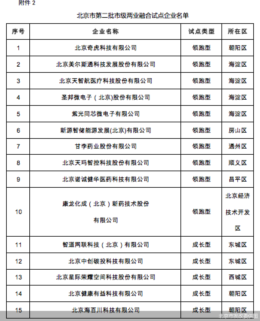 第二批32家市级两业融合试点企业涵盖了10家领跑型试点企业和22家成长型试点企业,覆盖了北京市融合发展的7个重点领域。这些企业将深化融合发展路径探索,发挥在产业链中的辐射带动及关键配套作用,加强与上下游环节的协同合作,助力提升北京市产业链供应链韧性。