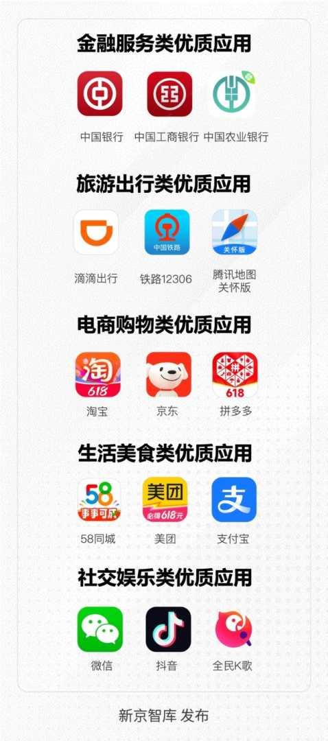 本次评测中,一些优质应用在整体适老化改造或某些方面的创新上表现突出,被选为“十大适老化优质应用”。以下为具体名单和分领域推荐的优质应用。