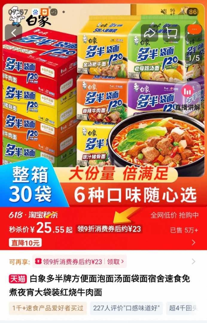 记者查阅第三方电商平台“白象官方旗舰店”发现,确有标注为“白象多半牌袋面方便面”的产品在售。