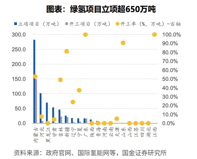值得一提的是,数据显示,截至2025年5月,已备案和立项的绿氢项目产能达到650万吨,存量70万吨,6GW的已开工未招标的项目,但目前仅约11万吨绿氢产能项目落地。因此,氢能行业未来的爆发和持续性都值得期待。