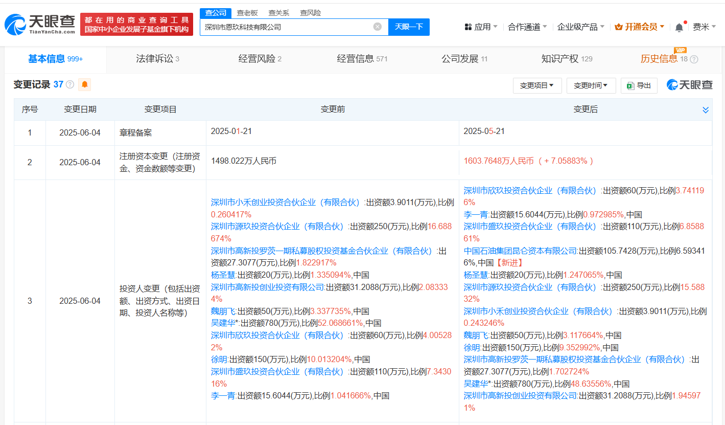 深圳恩玖科技新增中石油昆仑资本为股东,注册资本大幅提升
