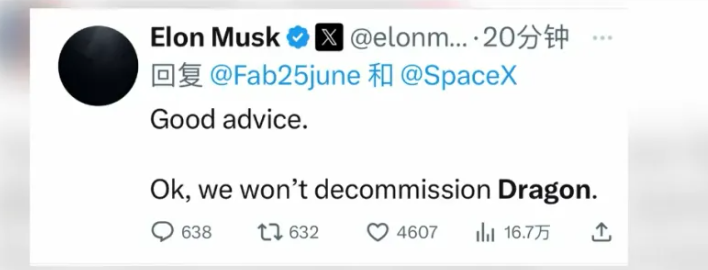 美国总统特朗普和亿万富翁马斯克当地时间5日发生激烈“口水战”,相互攻击言辞升级。特朗普称马斯克“疯了”,威胁要终止其政府补贴和合同;马斯克则反击称特朗普“忘恩负义”,并扬言要让旗下SpaceX的“龙”飞船退役。但随后,马斯克似乎有意缓和关系,回应网友建议称“好建议”,并否认会让飞船退役。