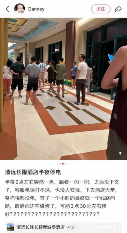 清远长隆长颈鹿城堡酒店突发停电,住客不满服务缺失