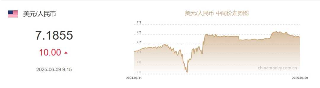 2025年6月9日人民币汇率中间价下调10个基点