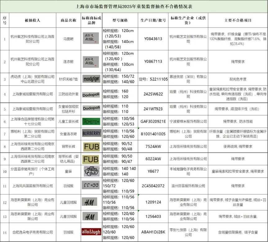 (文章来源:上观新闻,关键词:童装质量、市场监管、不合格产品、选购贴士)
