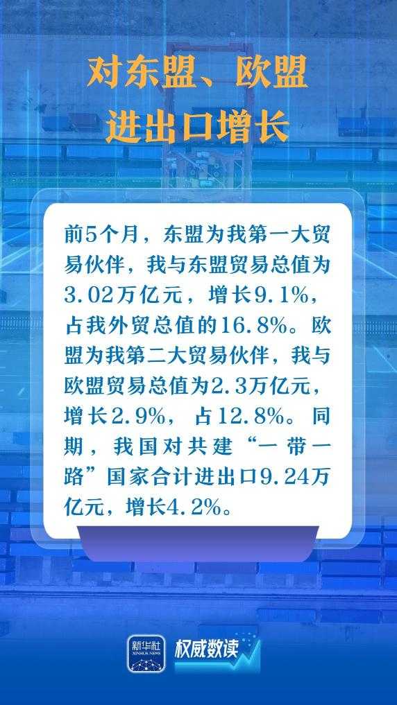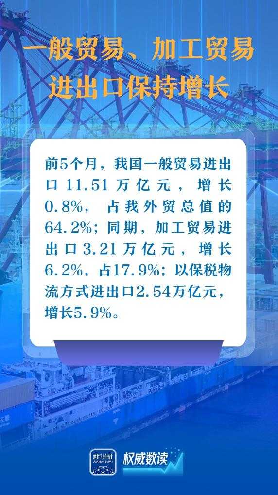 海关总署发布数据,今年前5个月我国货物贸易进出口总值达17.94万亿元人民币,同比增长2.5%。这一数据展示了我国对外贸易在外部复杂环境下的强大韧性和稳定性,有望为全球经济复苏注入更多动力。
