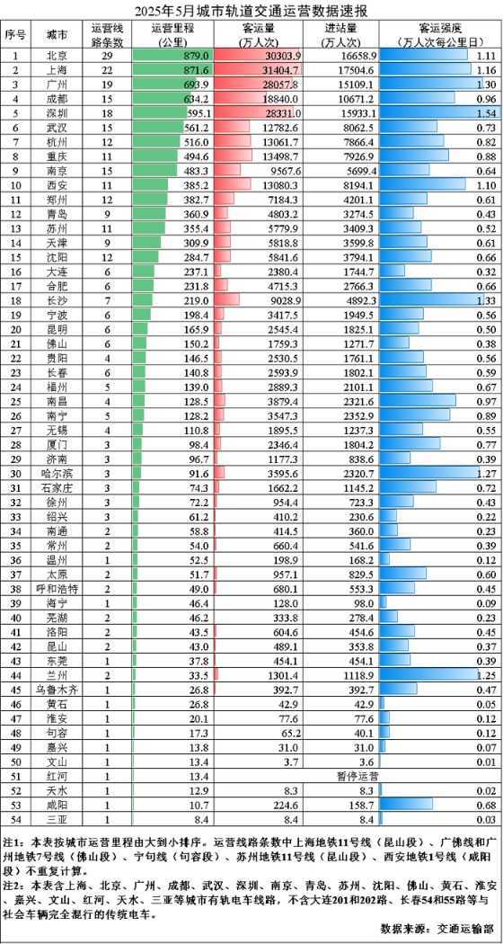 2025年5月城市轨道交通运营数据发布,客运量稳步增长