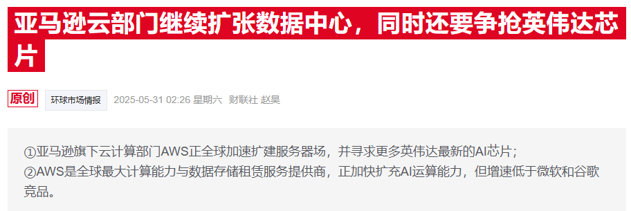 财联社先前报道提到,AWS首席执行官Matt Garman透露,今年早些时候,AWS已在墨西哥开设了一个数据中心集群,并在智利、新西兰、沙特阿拉伯等地建设新设施,进一步拓展其全球业务版图。