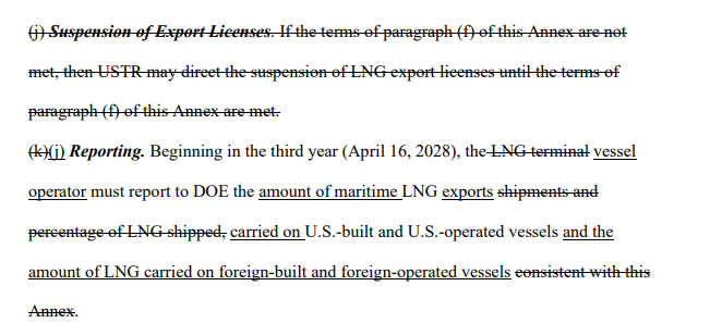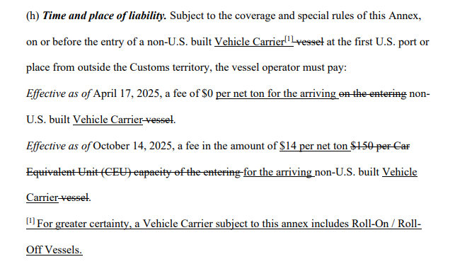 拟议修改删除惩罚措施,但保留报告义务。非美造船舶停靠费大幅降低,商船队及政府货物豁免。