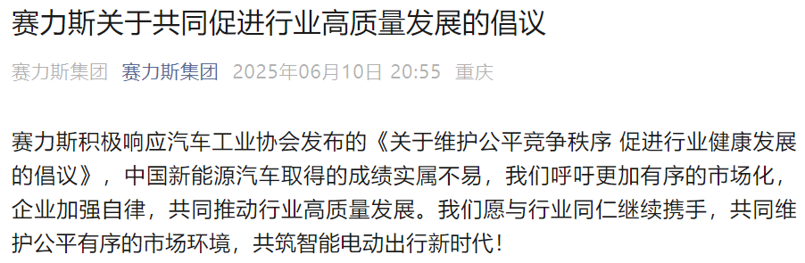 赛力斯表示,赛力斯正积极推进产品集成化、智造集聚化,促进产业链协同发展。一直以来,赛力斯按照合同约定付款,正常货款账期60天,实现双赢。