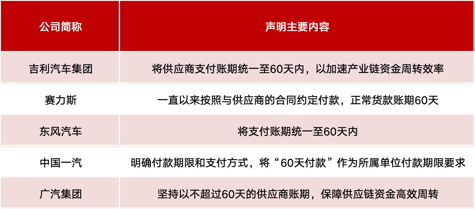 五家车企联合承诺支付账期不超60天,优化产业链资金流动