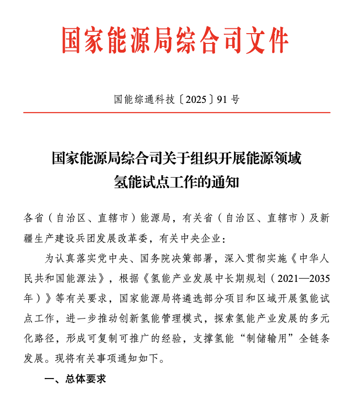 6月10日,国家能源局发布《国家能源局综合司关于组织开展能源领域氢能试点工作的通知》(下称《通知》)。《通知》旨在遴选部分项目和区域开展氢能试点工作,推动氢能管理模式创新,探索氢能产业发展的多元化路径,形成可复制可推广的经验,以支撑氢能“制储输用”全链条发展。