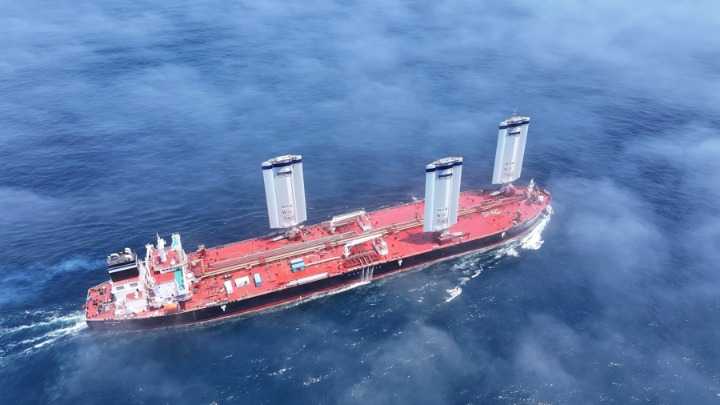 全球首艘风帆助推油轮命名,航运业绿色低碳转型迎新选择
