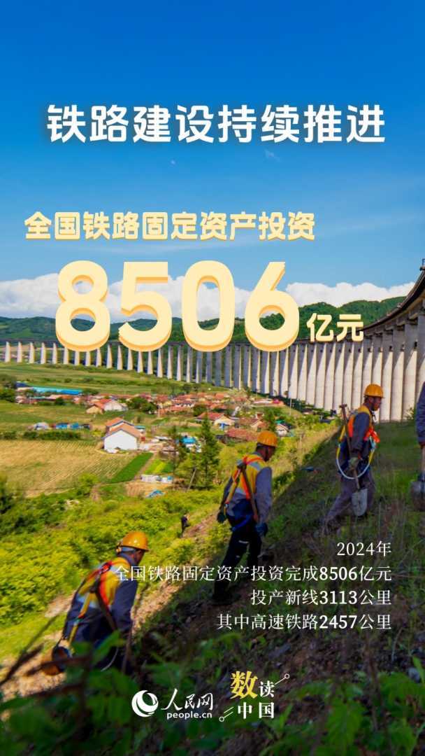 2024年,全国铁路旅客发送量突破43亿人次,货运总发送量超51亿吨,固定资产投资达8506亿元,营业里程突破16万公里。铁路作为国家运输“大动脉”,为经济发展注入澎湃动能。