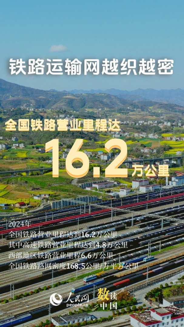 日前,国家铁路局发布的2024年铁道统计公报显示,全国铁路旅客发送量突破43亿人次,货运总发送量超过51亿吨,固定资产投资达到8506亿元,营业里程更是突破了16万公里。这一组组亮眼的数据背后,凸显了铁路作为国家运输“大动脉”的强劲动力。它高效地串联起城乡版图,畅通了人流与物流的双循环,以四通八达的路网为经济发展注入了源源不断的澎湃动能。
