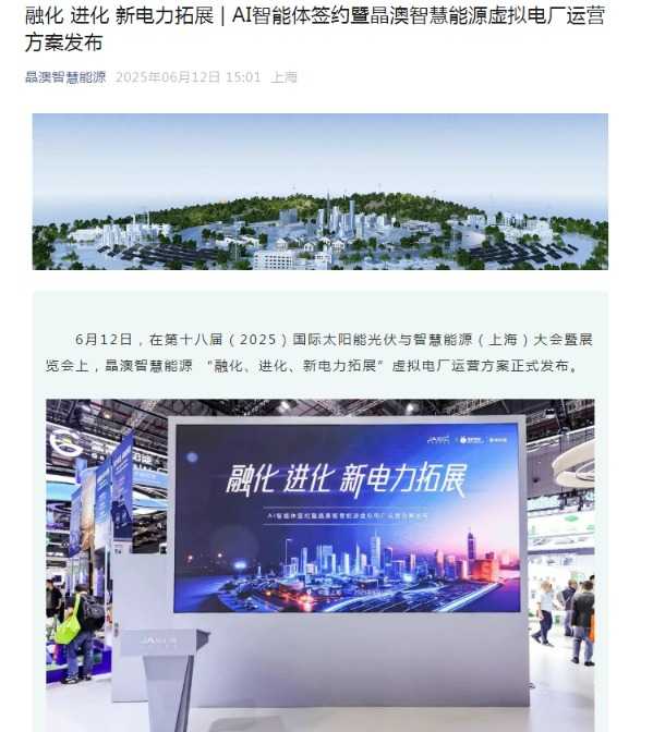 6月12日,晶澳智慧能源在第十八届国际太阳能光伏与智慧能源大会上发布虚拟电厂运营方案,并与蚂蚁数科签约共建能源数字生态,推动智慧能源领域发展。