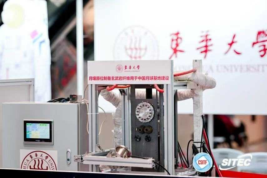 东华大学全球首展的“月壤成纤”技术及装备成为热门打卡点,该技术及装备可将月壤转化为高性能纤维材料,助力月球基地建设。