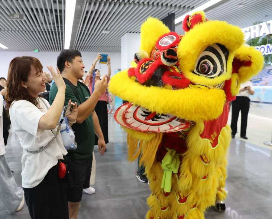 吴淞口国际邮轮港的到达大厅内,舞龙舞狮热闹非凡,外国旅客们对上海充满好奇,期待探索东方明珠、品尝中国美食。邮轮经济的蓬勃发展,不仅带动了旅游业,也促进了城市消费的增长。