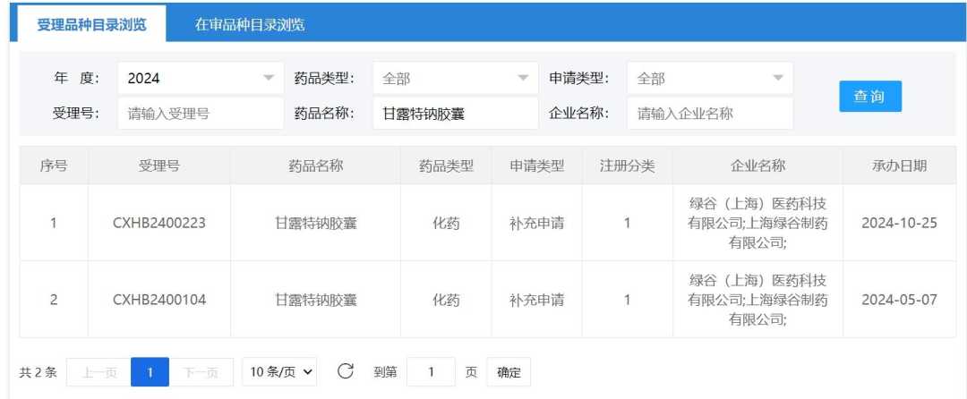 2024年,甘露特钠胶囊曾两次提交补充申请。