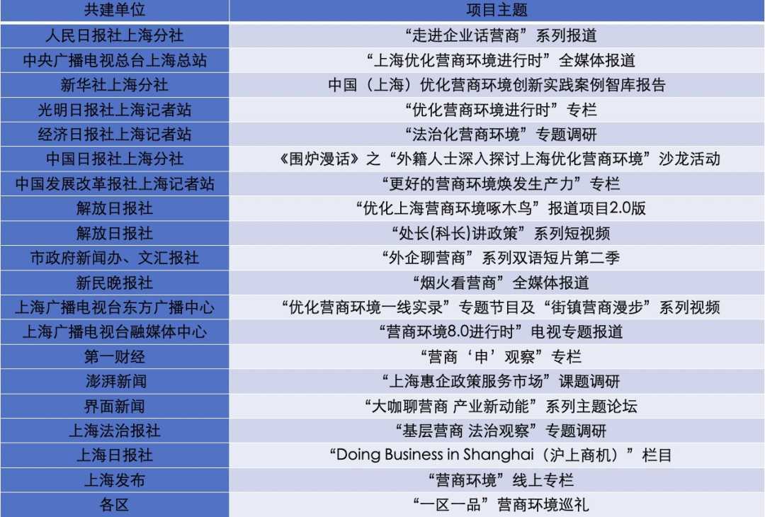 在去年启动了11个“媒体观察员”共建项目的基础上,今年上海进一步扩大了共建范围,启动了第二届共建项目,总数达到20个,持续优化营商环境。