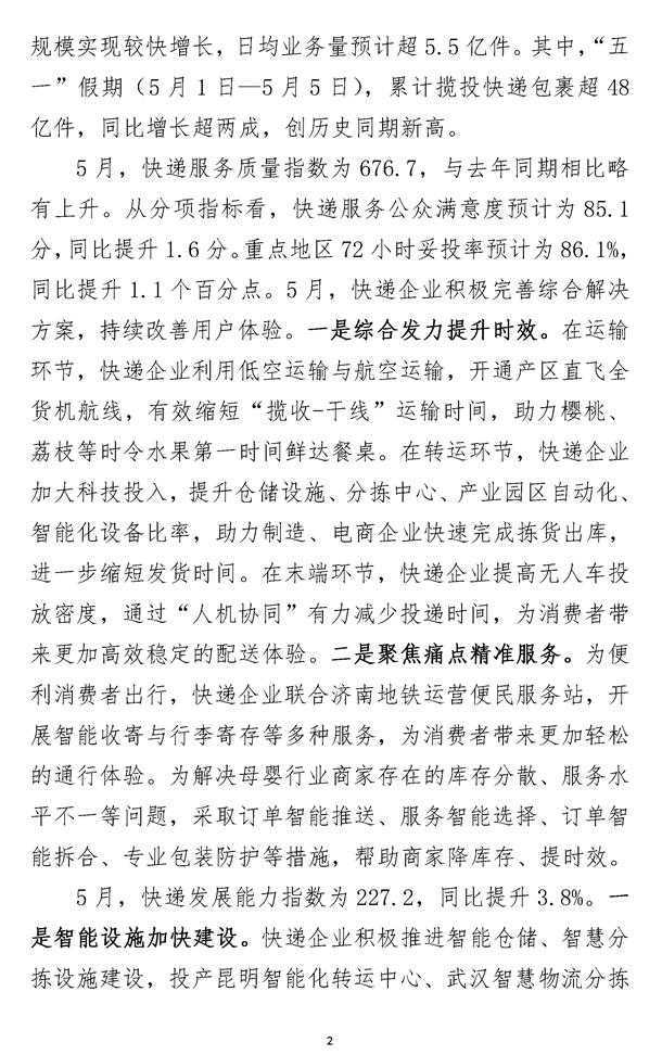 2025年5月中国快递发展指数同比提升5.7%,智能化升级成亮点