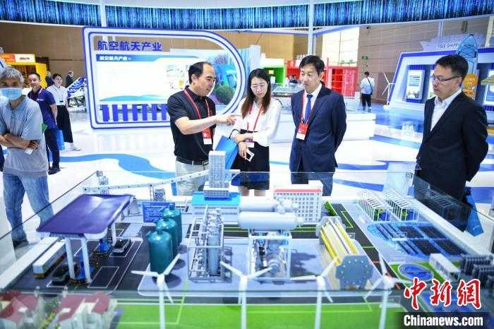 6月12日,天津,与会者参观荣程新能一体化氢能全产业链模型。当日,第三届天津国际航运产业博览会在国家会展中心(天津)启幕。 中新社记者佟郁摄