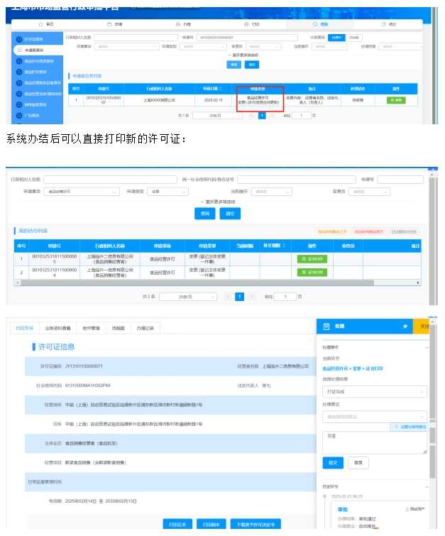 营业执照相关信息变更后,食品经营许可将自动更新。以往,企业需凭变更后的营业执照等材料提出变更申请,流程繁琐耗时。但政策调整后,申请人办理营业执照名称、法定代表人变更的同时,食品经营许可系统即可共享登记信息,自动更新许可信息。申请人同意后,系统自动完成信息更新,企业无需任何操作,即可完成变更。该政策自上线以来,已助力众多企业完成信息变更。