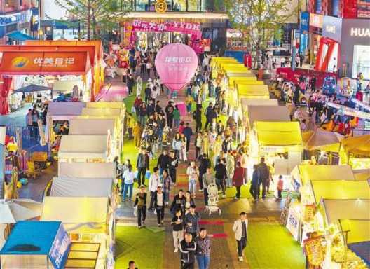 我市去年社零总额为1.57万亿元,其中60%的消费发生在夜间。图为南川区西城街道梦龙街区,夜市区游人如织。(本报资料图片)通讯员罗川摄视觉重庆